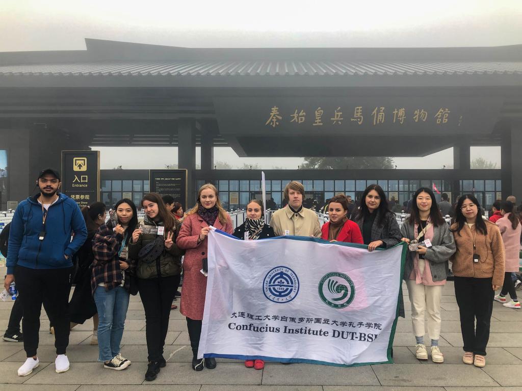 2019年10月18日至21日,大连理工大学国际教育学院来自白俄罗斯、韩国和埃及的9名孔子学院奖学金生和1名带队教师赴陕西省西安市和延安市进行了为期4天的文化考察。陕西是中华民族华夏文化的重要发祥地之一,有西周、秦、汉、唐等14个政权在此建都,历史文化底蕴深厚。在为期4天的行程中,奖学金生们先后参观了明代古城墙、大雁塔、回民街、黄帝陵、壶口瀑布、延安革命纪念馆、杨家岭革命旧址、枣园革命旧址和秦始皇兵马俑博物馆。