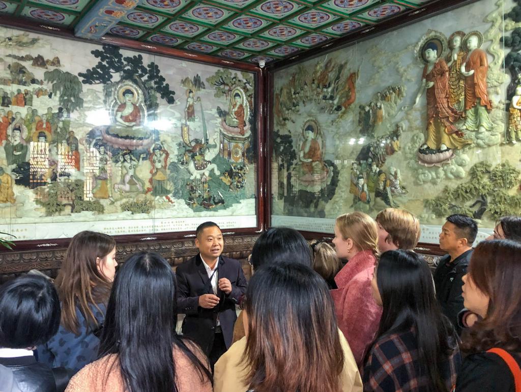 来到延安总是少不了参观红色景区,第三天师生一行来到了延安革命纪念馆和中国红色革命旧址——枣园、杨家岭。参观期间,留学生们听了红军长征的故事、长征路上的艰难困苦,大家钦佩中国共产党在毛主席长征路上的正确带领和指引,更对红军不畏困难艰险的精神表现出了特别的崇拜。了解红色历史,最让学生好奇的就是陕北的特色建筑“窑洞”,来自白俄罗斯的玉林说她从未见过这样的房子,并且感叹中国伟人在如此艰苦的条件下带领人民取得了令全世界瞩目的胜利。