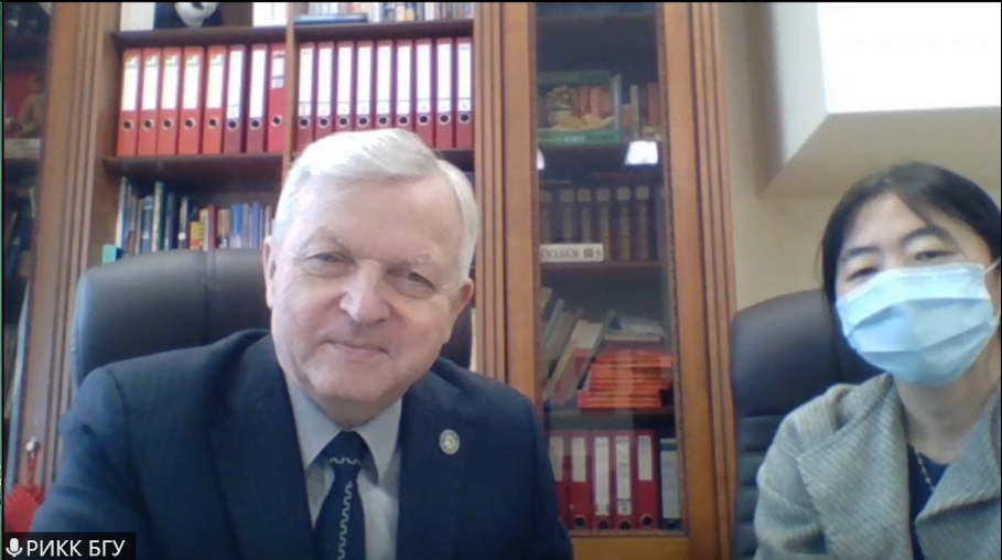 郝海院长随后发言,他向托济克院长和白方同事致以诚挚的问候。郝院长介绍了中国疫情防控现状,充分肯定了疫情形势下网络教学发挥的重要作用。他表示,国际教育学院在疫情开始前就已着手建立智慧教室,打造 “互联网+汉语教学”平台,应对疫情拥有充分的硬件保障。我院将积极开展网络教学,办好“2020年白俄罗斯学生‘汉语桥’线上冬令营”,为今后开展其他孔院线上项目积累经验。未来,中方将与白方同事共同努力,将白大孔院打造成为世界最优秀的孔子学院。