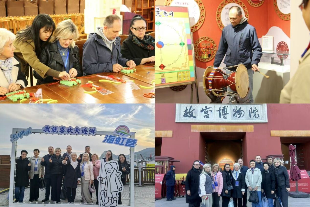 10月22日下午,访华团一行走进金家街非遗文化体验馆,开启了中国非遗文化的探索之旅。他们近距离感受了贝雕的精细、长海号子的粗犷、庄河剪纸的灵动及皮影戏的栩栩如生,深刻体会到中华文化的深厚底蕴。在体验馆客座教授的指导下,团员们还亲手编织了中国结,寓意“四季平安吉祥”。此外,文化考察还延伸至北京与大连,从故宫的古典雅致到国家博物馆的历史沉淀,从星海广场的现代脉动到渔人码头的浪漫风情,特别是天安门广场的庄严宏伟,都令访华团成员震撼不已。此次访问不仅是一场视觉与心灵的盛宴,更是一次跨越时空的文化交流与理解之旅,让每位团员都满载而归,收获了满满的感动。