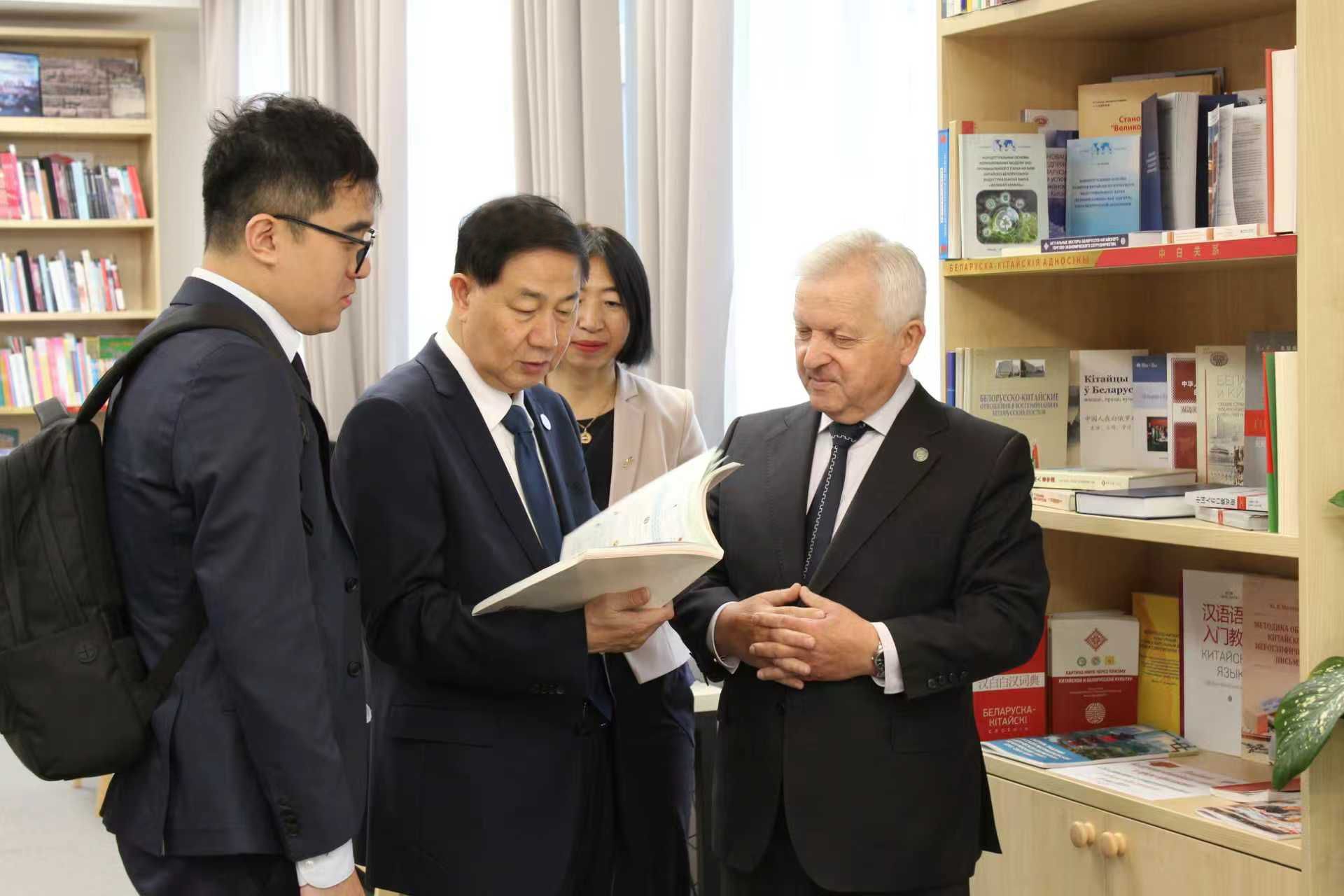会前,项昌乐书记一行参观了孔子学院,实地考察孔子学院近年来的发展成就,慰问一线外派教师。在走进本土中小学中文教师培训班的课堂时,本土教师对大连理工大学选派优质师资并提供宝贵学习机会表示感谢。项书记鼓励他们担当起中白语言文化交流的友好使者,以实际行动推动白俄罗斯中文教育事业的发展。