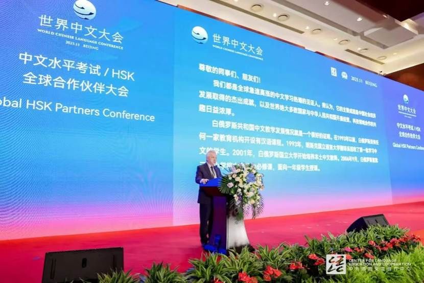 我校孔子学院外方院长托济克受邀出席“中文水平考试(HSK)全球合作伙伴大会”,并以中白友好协会主席、白俄罗斯前副总理身份致辞,分享了白俄罗斯中文教育的蓬勃发展景象。他在致辞中指出,全球中文学习热潮持续升温的核心成因在于中国社会经济发展取得的卓越成就,以及世界绝大多数国家与中国开展经贸、科技及人文合作意愿的不断增强。白俄罗斯的中文教学发展轨迹,正是全球中文热的鲜活例证。