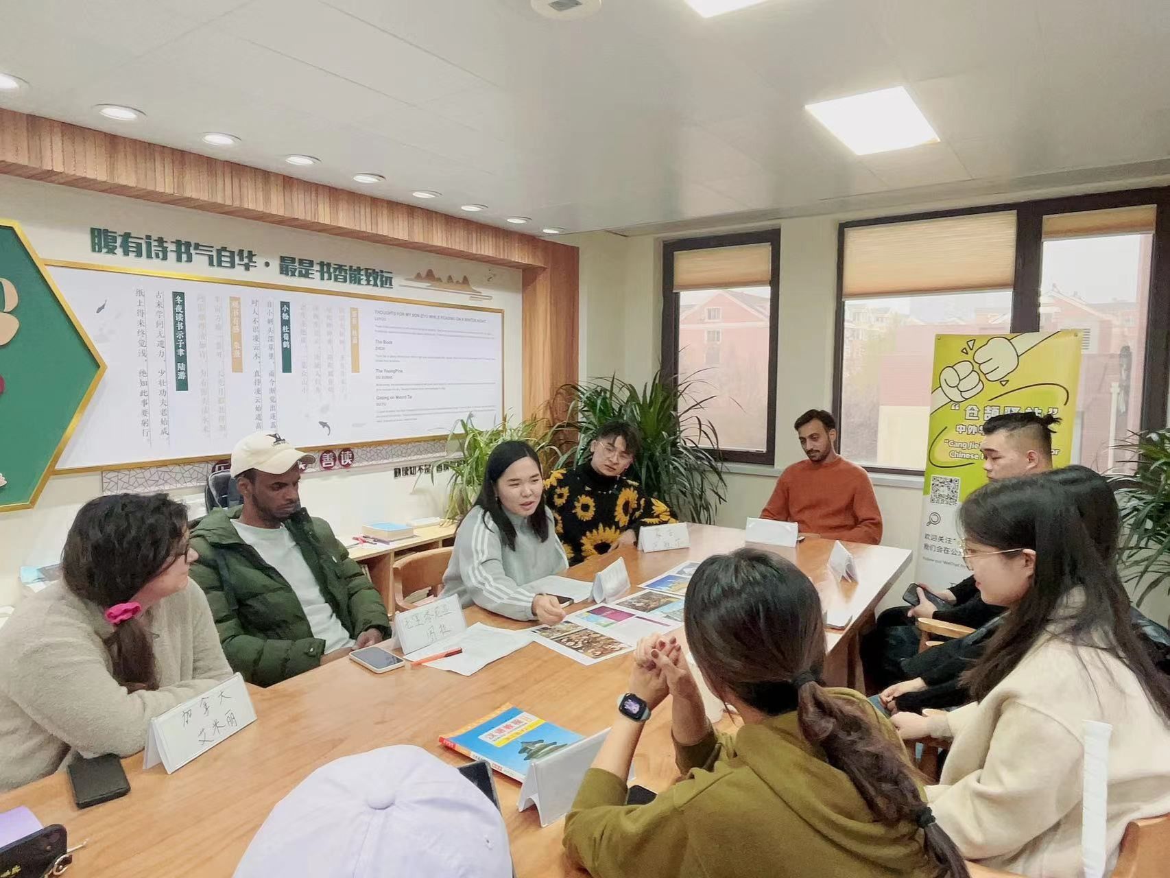 In order to promote cultural exchanges and civilization mutual understanding between Chinese and international students on campus with the continuous construction of a cultural project named “Study abroad at Dalian University of Technology”, on November 15th, the second cultural salon of “Cangjie Station” for Chinese and Foreign students was held at the No.2 Building of Boliu. This activity attracted Chinese and international students from different colleges and countries. Five International students respectively come from Pakistan, Canada, Mauritania, Mongolia and Kazakhstan, two Chinese students majoring in international Chinese education and three Chinese students from the School of Foreign Languages participated in this salon. This activity invited Teacher Xing Weijia as the instructor as well.
