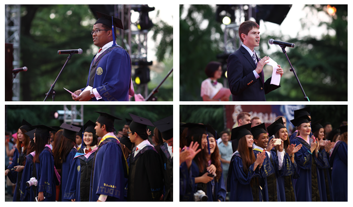 After the graduation ceremony, full of Chinese traditional atmosphere’s site has became international students’ show off platform. International students from South Korea, Thailand, Pakistan and other countries presented wonderful performances at the stage. International students’ music band performed various genre songs from rock to ballad in Chinese and English languages, pushed atmosphere to a climax.