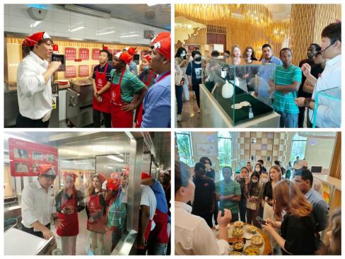 In the practical segment, skilled dumpling masters guided the international students through the entire dumpling-making process, from kneading the dough and rolling out the wrappers to crafting the dumplings themselves. With active participation, the students experienced the joy of creating a delectable dish. Additionally, the students had the opportunity to tour the dumpling production workshop, delving into the technological and mechanical aspects of modern dumpling manufacturing. The staff showcased large-scale dough press machines, cutting-edge techniques for preserving the freshness of vegetables, and exclusive seasoning recipes. This exploration exposed the students to the modernized processing methods that align with contemporary development trends, deepening their understanding and appreciation of dumpling creation.