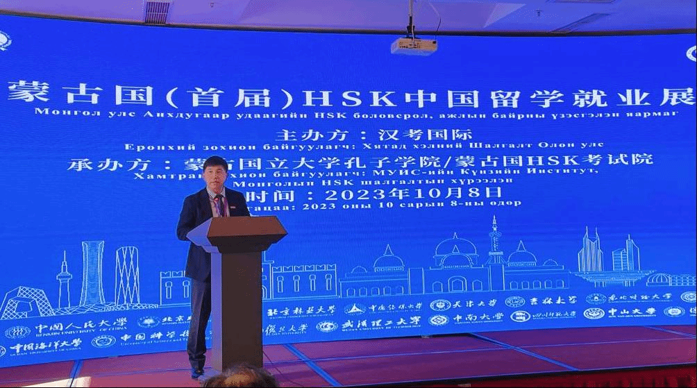 On the morning of October 8th, the first Mongolian HSK China Study Abroad Employment Exhibition opened in the capital Ulaanbaatar. The exhibition attracted over 5000 Mongolian HSK candidates, Chinese learners, parents, and people from all walks of life to participate, and the scene was enthusiastic. More than 200 Chinese and Mongolian guests attended the opening ceremony, including Shen Minjuan, Ambassador Extraordinary and Plenipotentiary of China to Mongolia, Bulgen, Director of the Mongolian Ministry of Foreign Affairs Bureau for External Propaganda and Cultural Exchange, Li Zhi, Counselor of the Chinese Embassy in Mongolia and Director of the Ulaanbaatar Chinese Cultural Center, Lu Anhui, Assistant President of Dalian University of Technology, Huang Lei, Deputy General Manager of Hankao International, and representatives of Chinese universities and enterprises.
