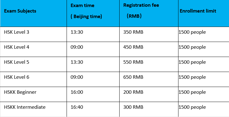 * For registration and examination details, please refer to the instructions, on the Chinese Proficiency Exam (HSK, HSKK) on home network examination in mainland China (special subject) examinee notice.