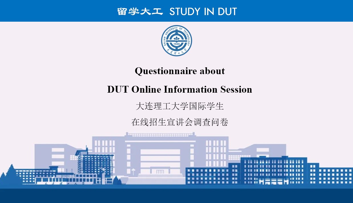 The School of International Education of DUT is committed to providing you with a wonderful admission information session experience. Please scan the QR code or click the following link to fill in the questionnaire about 2022 DUT Online Information Session for International Students. We will take note of everyone's information and notify the specific session arrangements through your contact information.