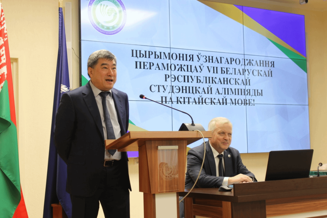 On the afternoon of the 15th, Hu Yunbo, Second Secretary of the Science, Education and Culture Department of the Embassy of the People’s Republic of China in Belarus, Vice President of Minsk State Language University Лущинская Ольга, Dean Tozik and Liu Suling of the BSU Confucius Institute , as well as the Director of the Chinese Department at the Minsk State Language University and the Head of the Chinese Department of State Relations and Language at the Belarusian State University, jointly attended the award ceremony held at the BSU Confucius Institute auditorium. The award ceremony is presided over by Dean Tozik.