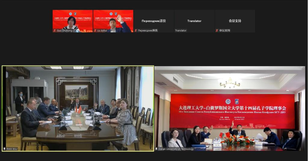 On June 15, the 14th DUT & BSU Council Meeting of Confucius Institute was held online at which Guo Dongming, DUT President, Lu Anhui, President Assistant, Andrei Korol, Rector of Belarusian State University, Dmitry Medvyev, First Vice-rector, Konstantin Kozadaev, Vice-rector of International and Teaching Affairs, directors of our School of International Education, International Cooperation and Exchange Office, Office of Educational Administration and Finance Office, as well as persons of two sides in charge of Confucius Institutes, were in attendance. Dmitry Medvyev was the host.